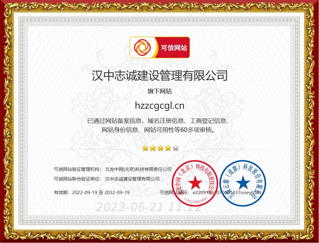 首页荣誉资质志诚 可信认证
